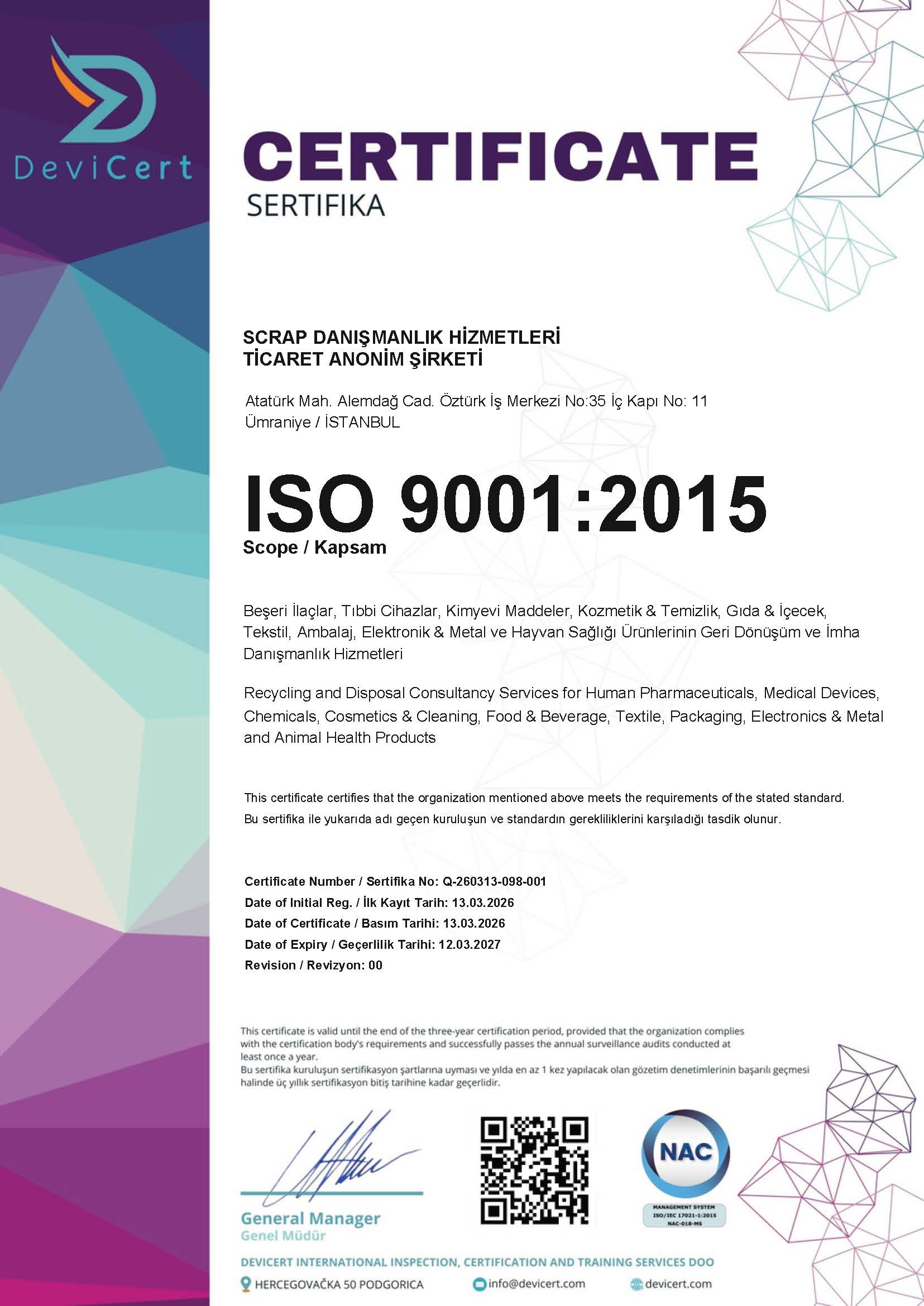 SCRAP Danışmanlık Hizmetleri Ticaret AŞ olarak, 2007’den beri imha ve geri dönüşüm danışmanlığı alanında güvenilir ve yasal çözümler sunuyoruz. Son kullanma tarihi geçen, hasarlı veya geri çekme ürünlerinizin imha ve geri dönüşüm sürecini titizlikle yönetiyor, tüm yasal mevzuatlara uygun şekilde hızlı ve güvenli bir şekilde tamamlıyoruz.